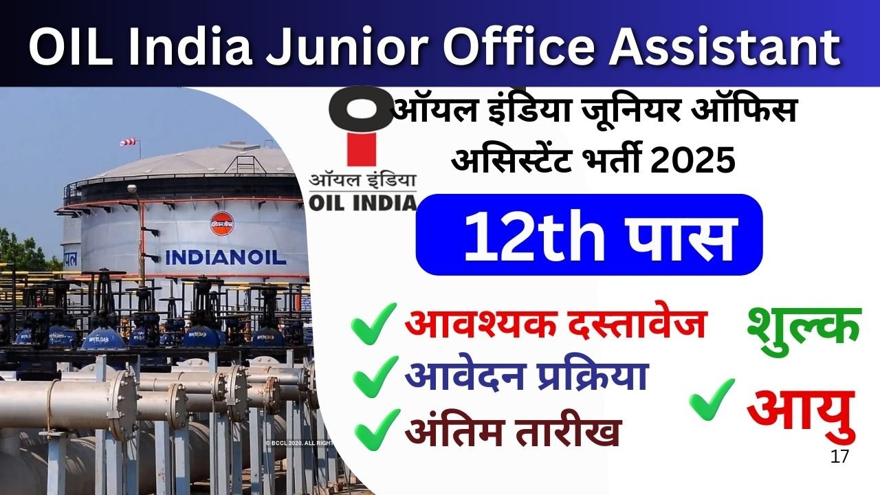 OIL India Junior Office Assistant Vacancy 2025 : 12वी पास के लिए आई आयल इंडिया में ऑफिस असिस्टेंट की नई भर्ती ?