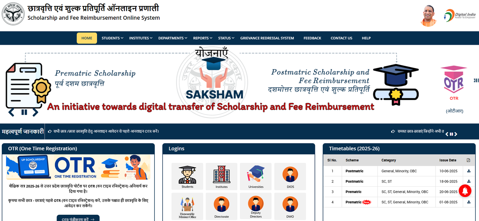 - यूपी छात्रवृत्ति की आधिकारिक वेबसाइट पर जाएं।