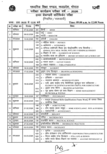 कक्षा 12वीं बोर्ड परीक्षा टाइम टेबल