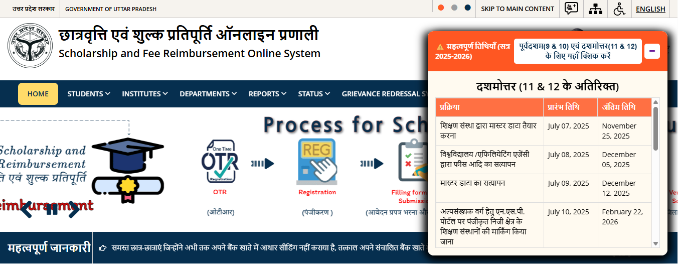 | UP Scholarship Correction(संशोधन) | Click Here | ||