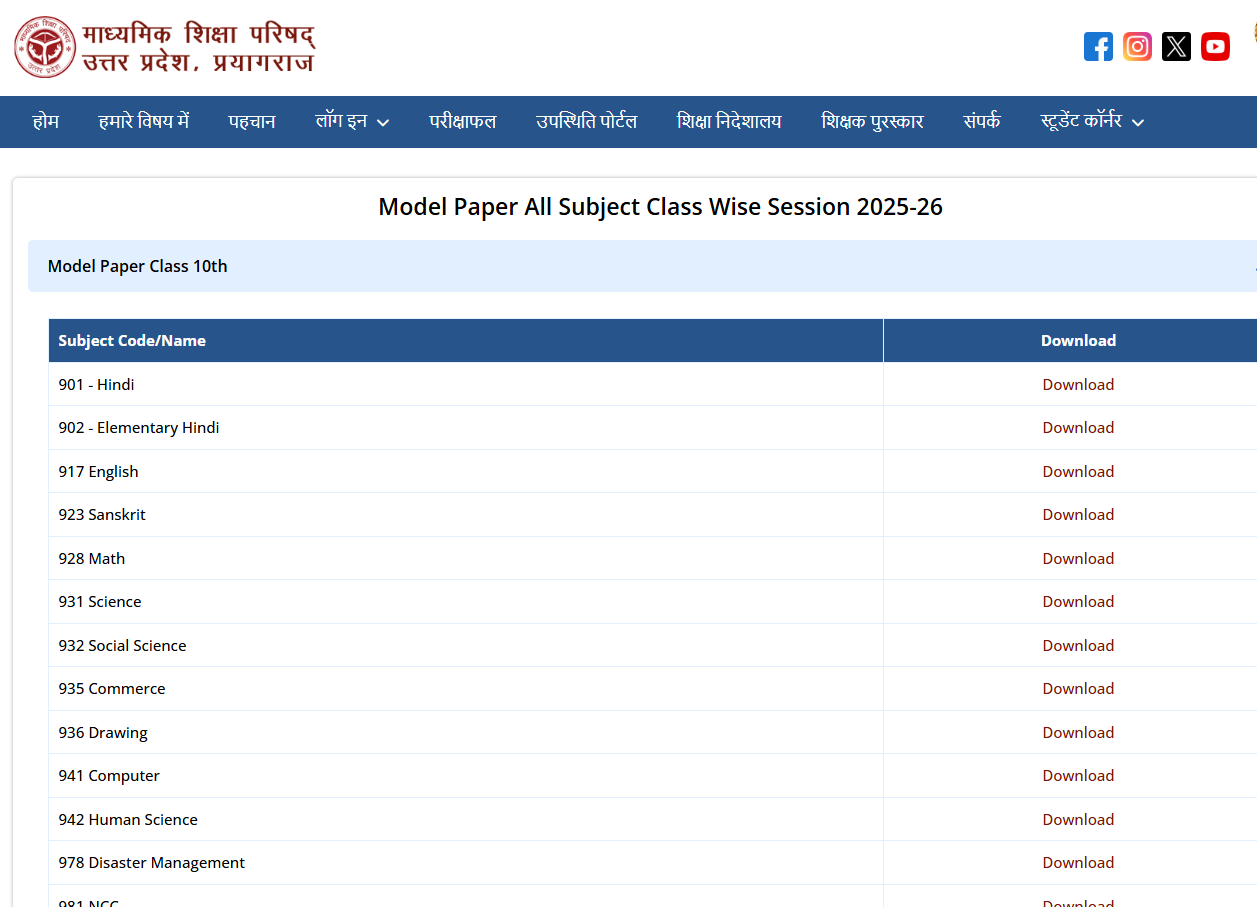 यूपी बोर्ड मॉडल पेपर कैसे डाउनलोड करें ?
